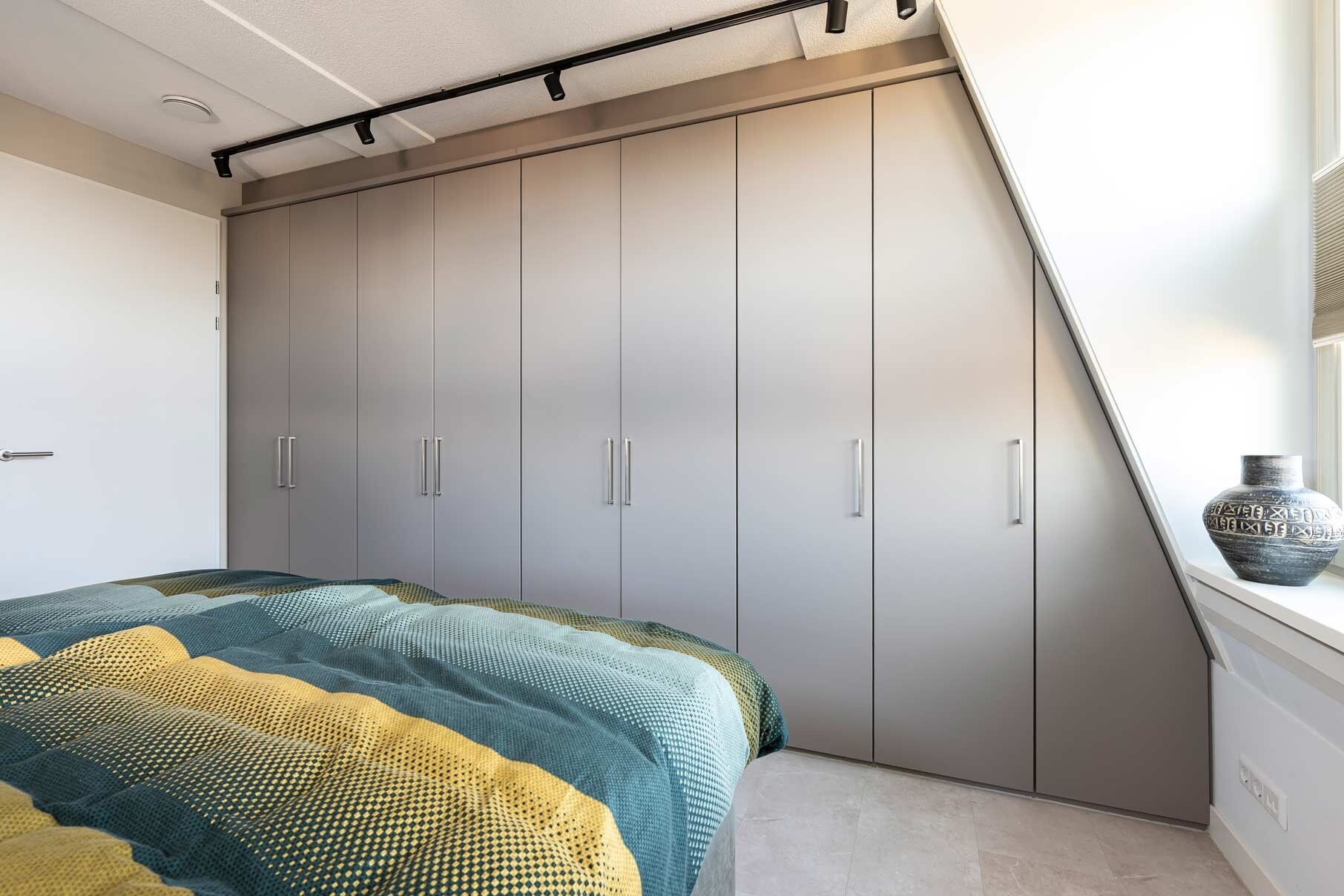 Tijdens de samenstelling hebben we nauwkeurig gemeten en rekening gehouden met alle details: van plinten tot overgangen tussen kamers. Het resultaat is een strakke, naadloze vloer die door het hele appartement doorloopt en visuele rust creëert. Deze doorlopende basis verbindt alle ruimtes en vormt het canvas voor de verdere inrichting.